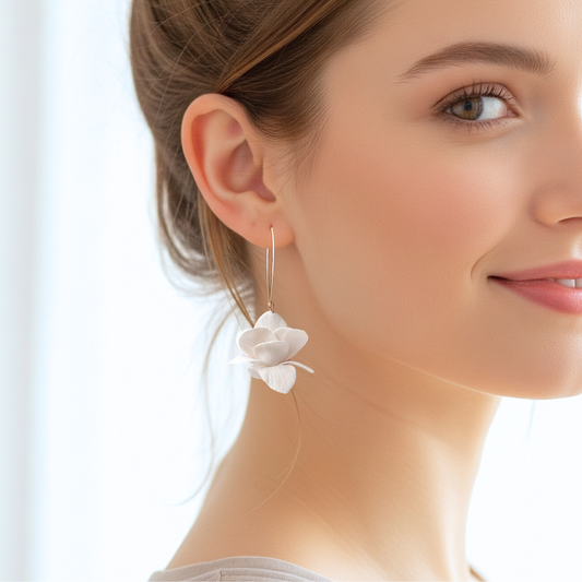 White Flower Drop Earrings, Lightweight Elegant Statement Jewelry, Boho Large Flower Chic Clay Earrings