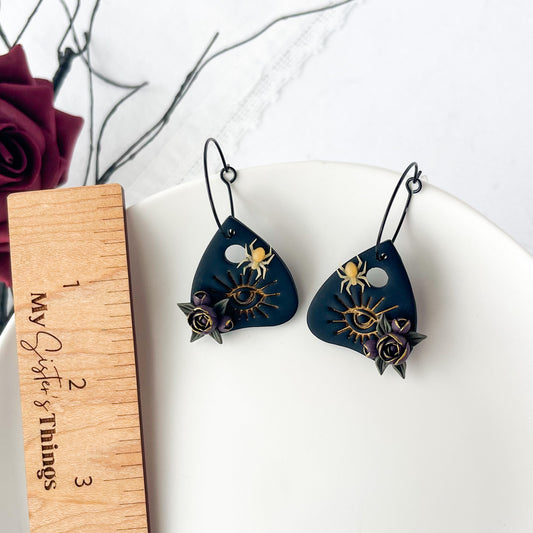 Edgy Handmade Ouija Planchette Hoop Earrings: Unique Statement Jewelry, Witchy Halloween Alternative Accessories, Clip-On Option