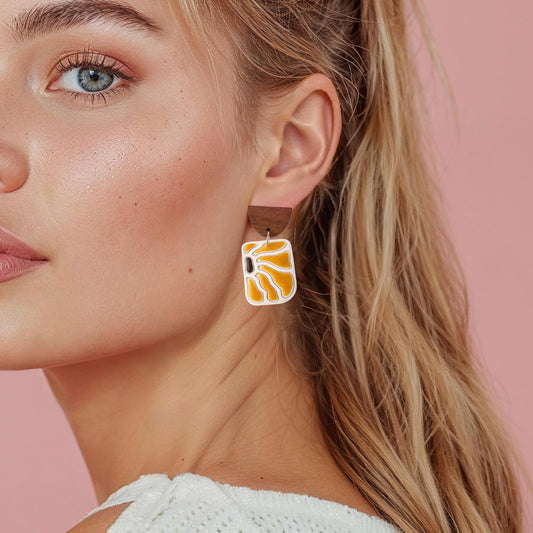 Abstract Sunflower Dangle Earrings: Lightweight Polymer Clay Jewelry, Surgical Steel Posts, Clip On Option