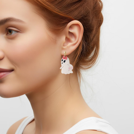 Booty Ghost Dangle Earrings: Cute Halloween Polymer Clay Jewelry, Handmade Fall Accessories, Clip-On Earring Option
