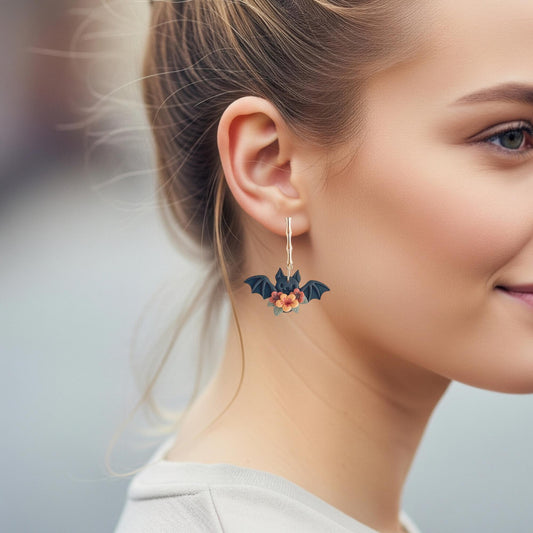Floral Bat Earrings: Fall Halloween Jewelry, Cottagecore Accessories