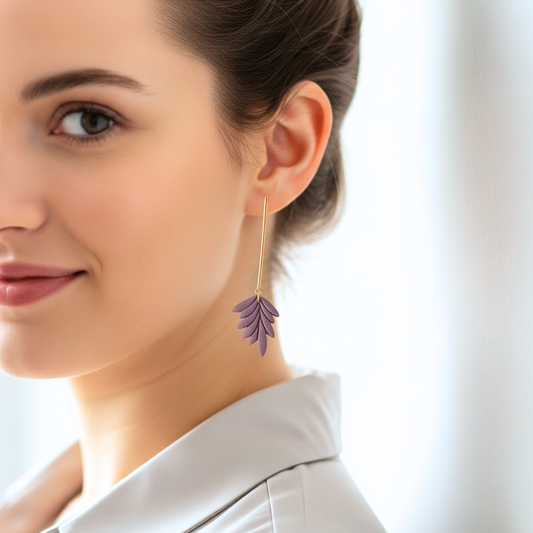 Eggplant Leaf Dangle Earrings, Handmade Lightweight Statement Jewelry, Polymer Clay Clip On