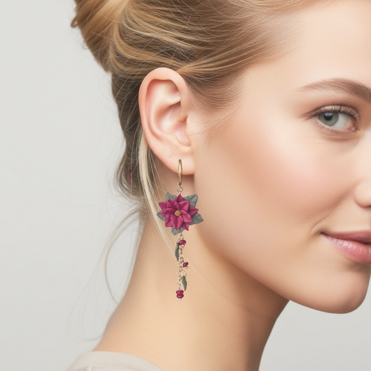 Poinsettia Christmas Earrings: Lightweight Polymer Clay Jewelry, Handmade Hypoallergenic Earrings, Clip On Option