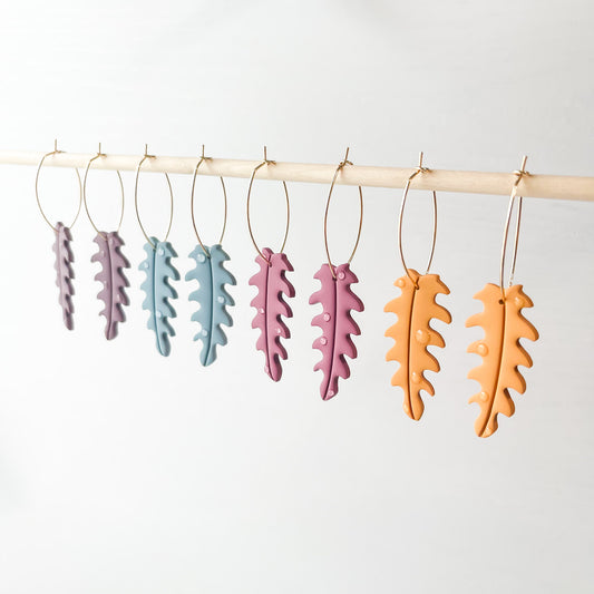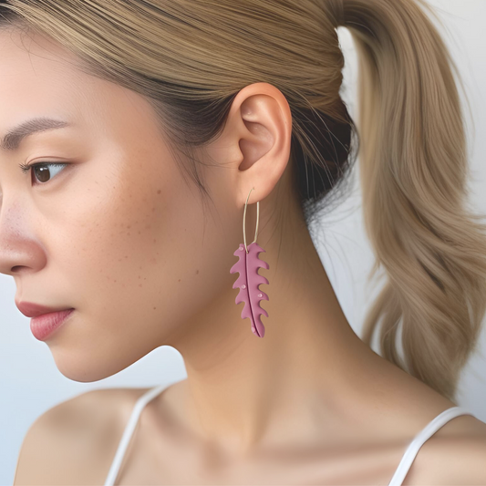 Mauve Dewey Leaf Dangle Earrings, Handmade Lightweight Statement Jewelry, Polymer Clay Clip On