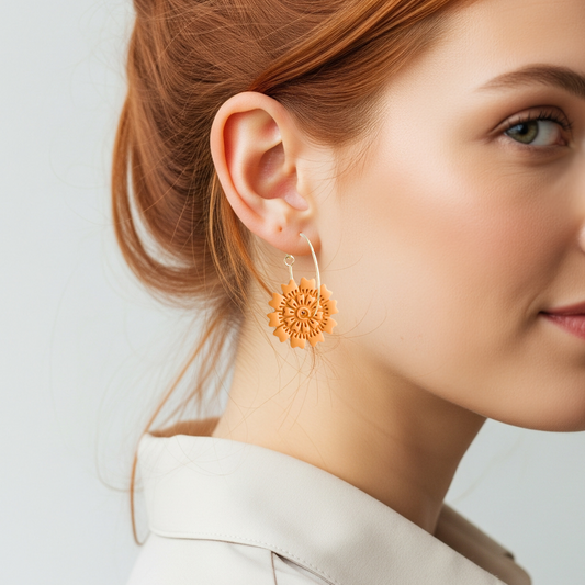 Marigold Yellow Imprinted Polymer Clay Hoops, Handmade Statement Earrings, Surgical Steel Hypoallergenic Jewelry