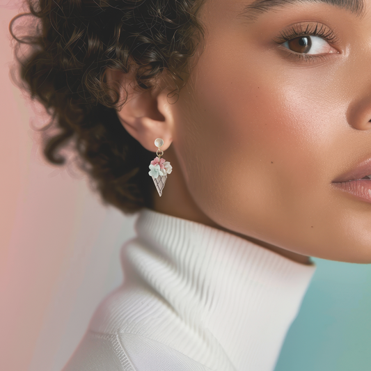 Floral Ice Cream Cone Earrings, Whimsical Polymer Clay Jewelry, Floral Clip On Earrings