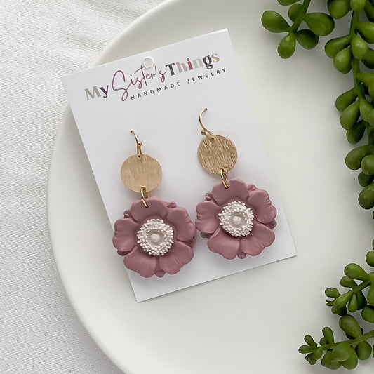 Lotus Flower Dangle Earrings, Handmade Polymer Clay Floral Jewelry, Lightweight Chic Hypoallergenic Earrings