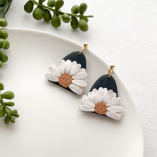 Edgy Handmade White Daisy Pastel Earrings | Statement Polymer Clay Jewelry | Boho Chic, Trendy & Unique Designs