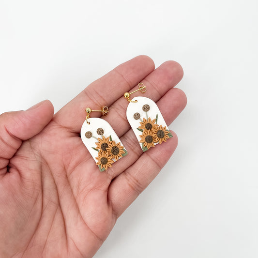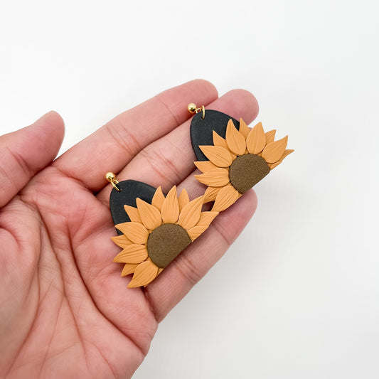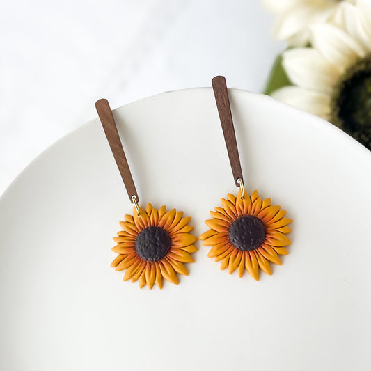 Handmade Sunflower Dangle Earring, Hypoallergenic Surgical Steel Polymer Clay Jewelry, Clip On Earring Option