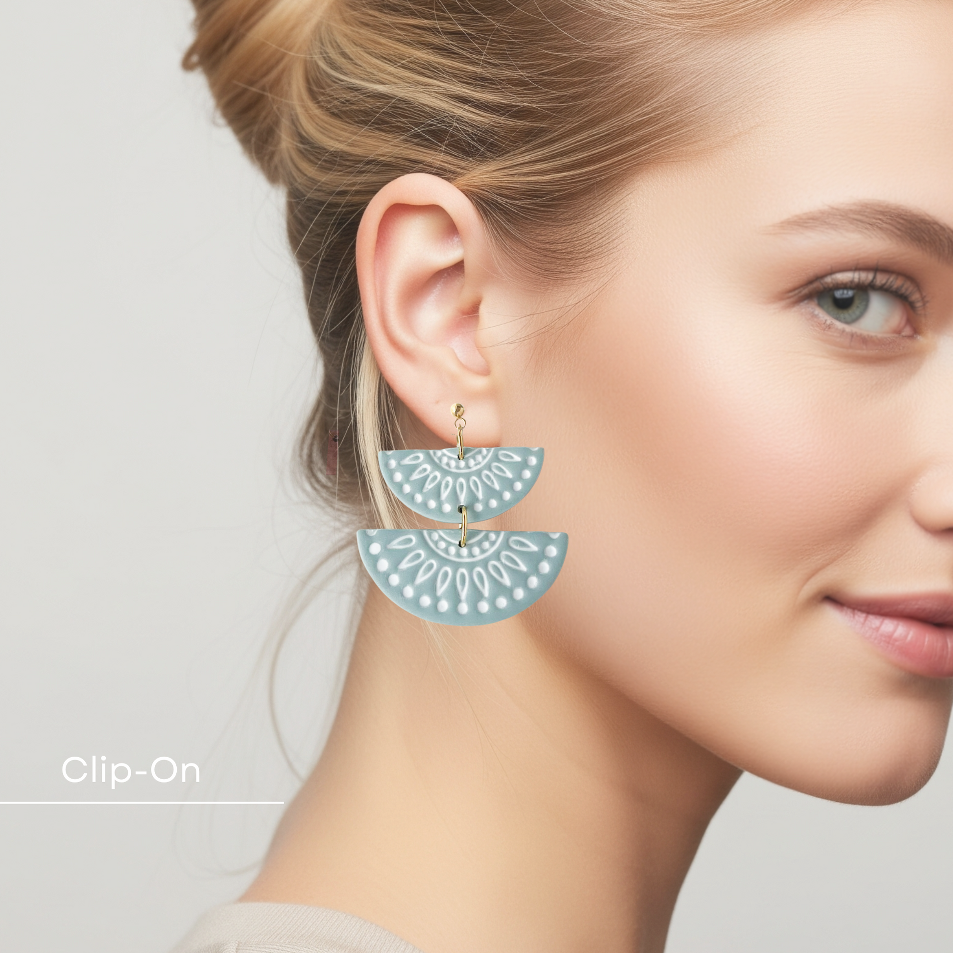 Add a pop of playful charm to your look with these Aztec Dangle Earrings. Crafted from lightweight polymer clay, they bring bold statement style without weighing you down. Perfect for sensitive ears, they’re hypoallergenic and offer a comfy clip-on option—no piercings needed! Easy to wear and full of personality, these earrings are your new go-to accessory for everyday fun.