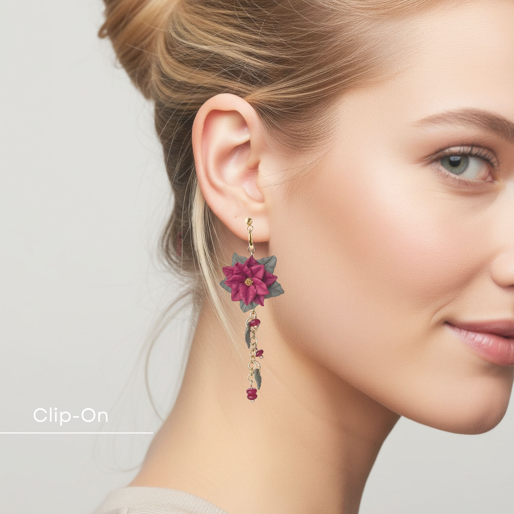 Poinsettia Christmas Earrings: Lightweight Polymer Clay Jewelry, Handmade Hypoallergenic Earrings, Clip On Option