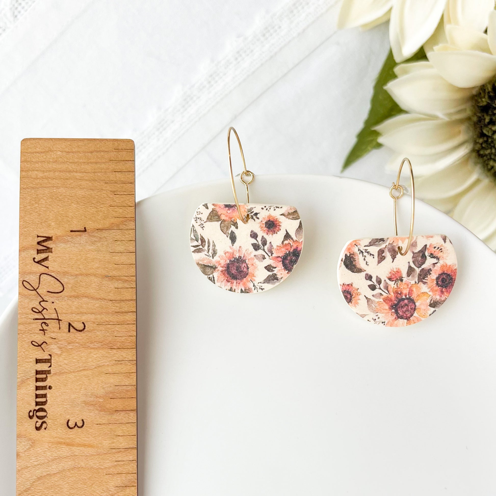Sunflower Hoop Earrings: Handmade Polymer Clay Jewelry, Fall Floral Earrings, Clip-On Option